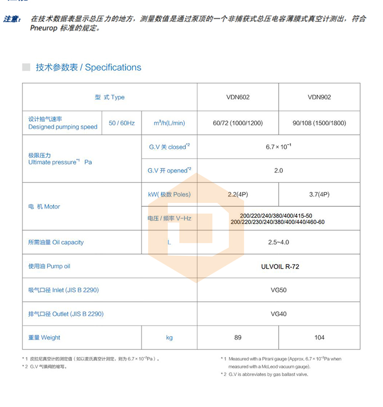 VDN902 油旋片式真空泵特長