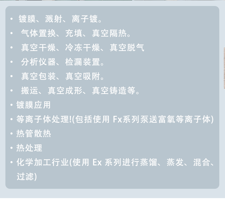采用高吸氣壓強也能穩(wěn)定運轉(zhuǎn)的強制供油方式。選用油霧過濾器、油回收裝置及耐熱密封件后,就能在大氣壓以下的全壓強范圍內(nèi)連續(xù)運轉(zhuǎn)。