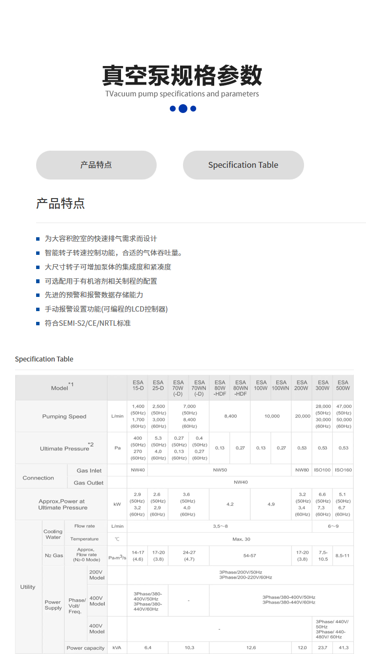 荏原ESA真空泵是日本荏原公司研發(fā)的高性能干式真空泵,適用于多種工業(yè)場景,具有以下特點: